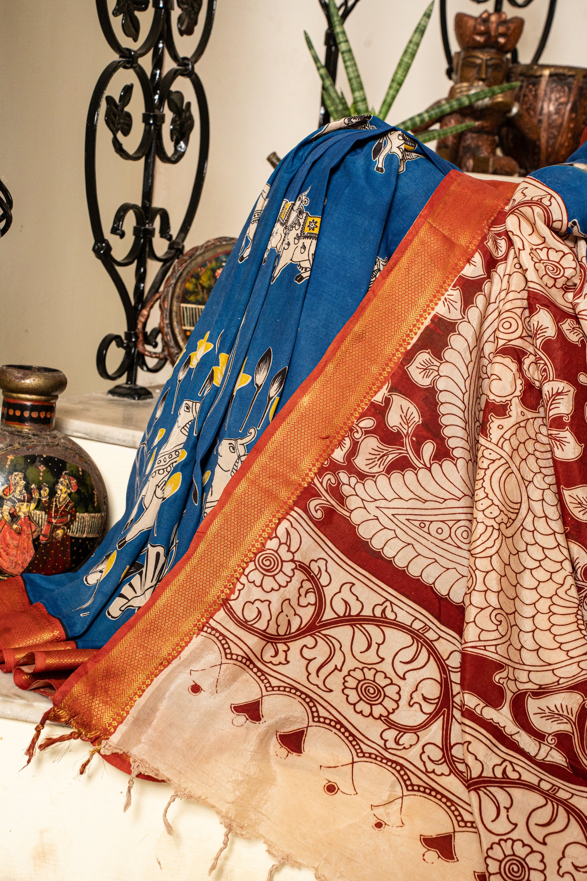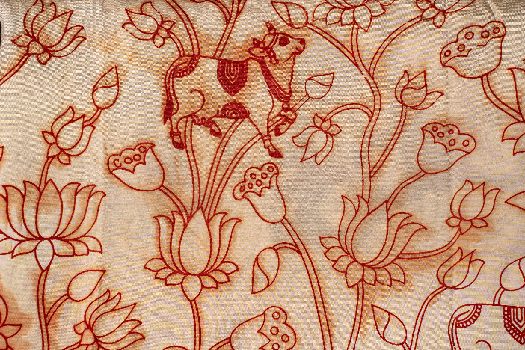 Extended exposure may fade the natural Kalamkari pigments. Store away from strong light.