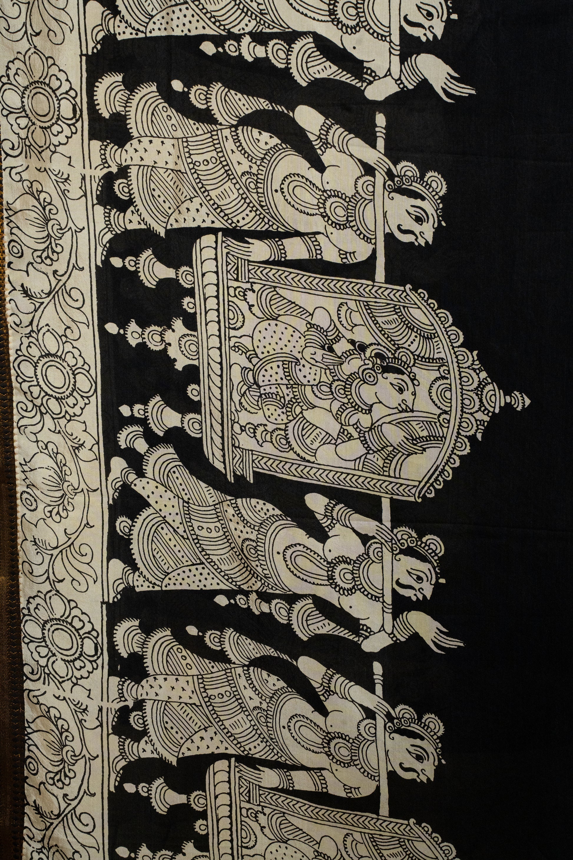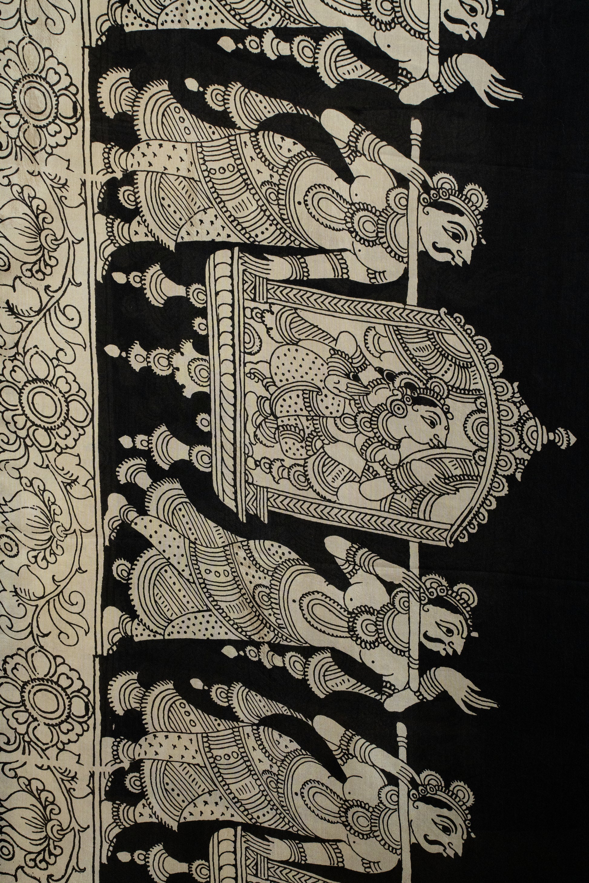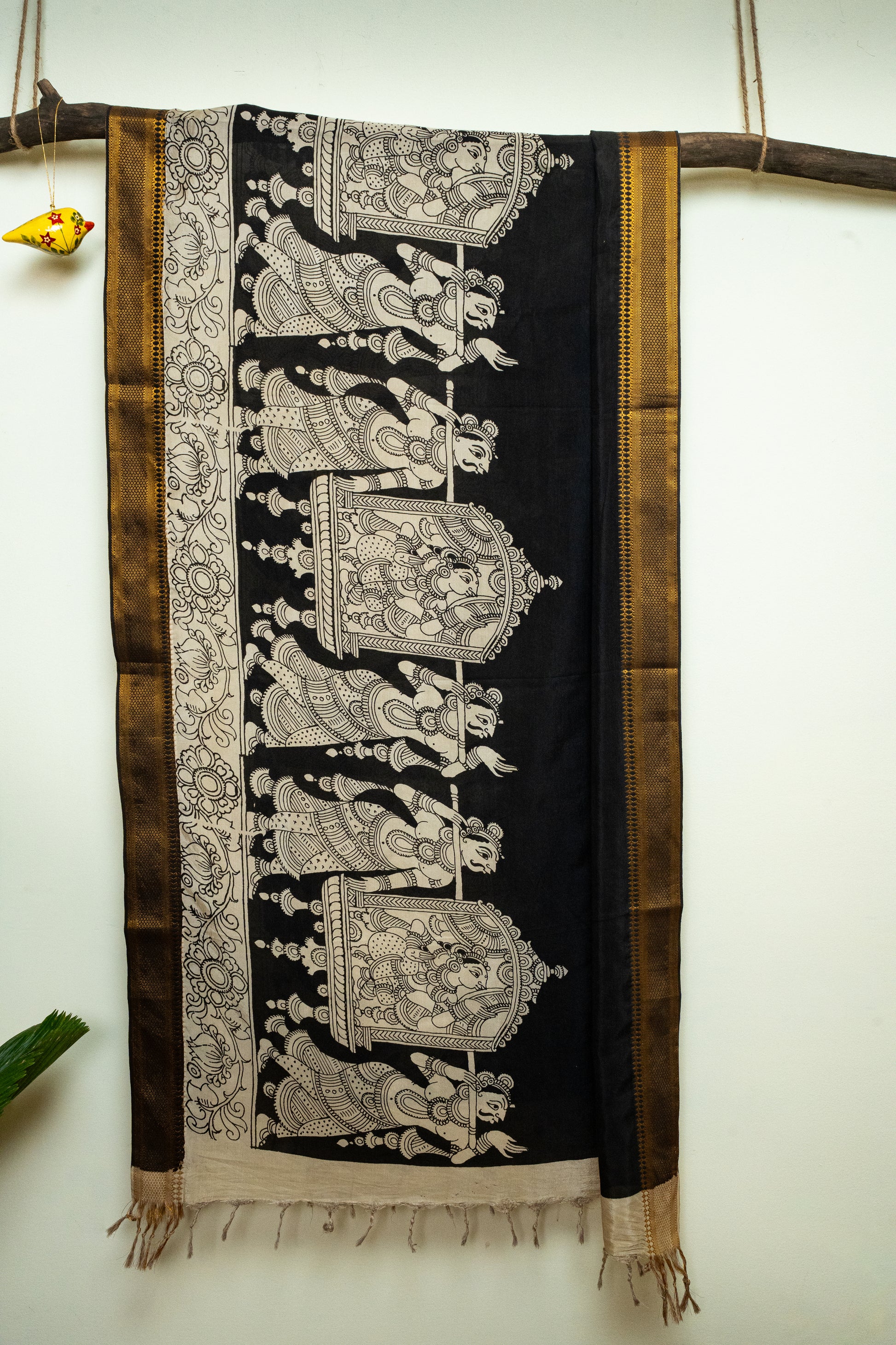 A moment from old India—bride in her Doli, surrounded by timeless grace and gentle storytelling...Kalamkari Hand Painted elegant Dupatta..